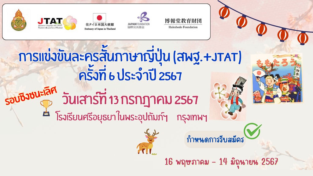 รับสมัครนักเรียนระดับชั้นมัธยมศึกษาทั่วประเทศเข้าร่วมแข่งขันละครสั้นภาษาญี่ปุ่น ครั้งที่ 6 ประจำปีการศึกษา 2567