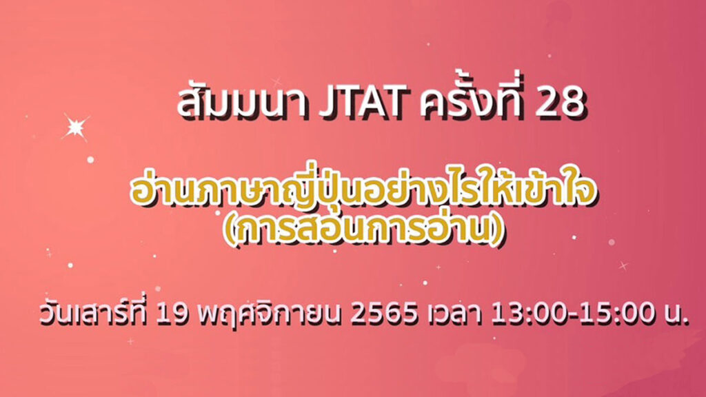 ขอเชิญเข้าร่วมการสัมมนา JTAT ครั้งที่ 28 “อ่านภาษาญี่ปุ่นอย่างไรให้เข้าใจ” (การสอนการอ่าน)